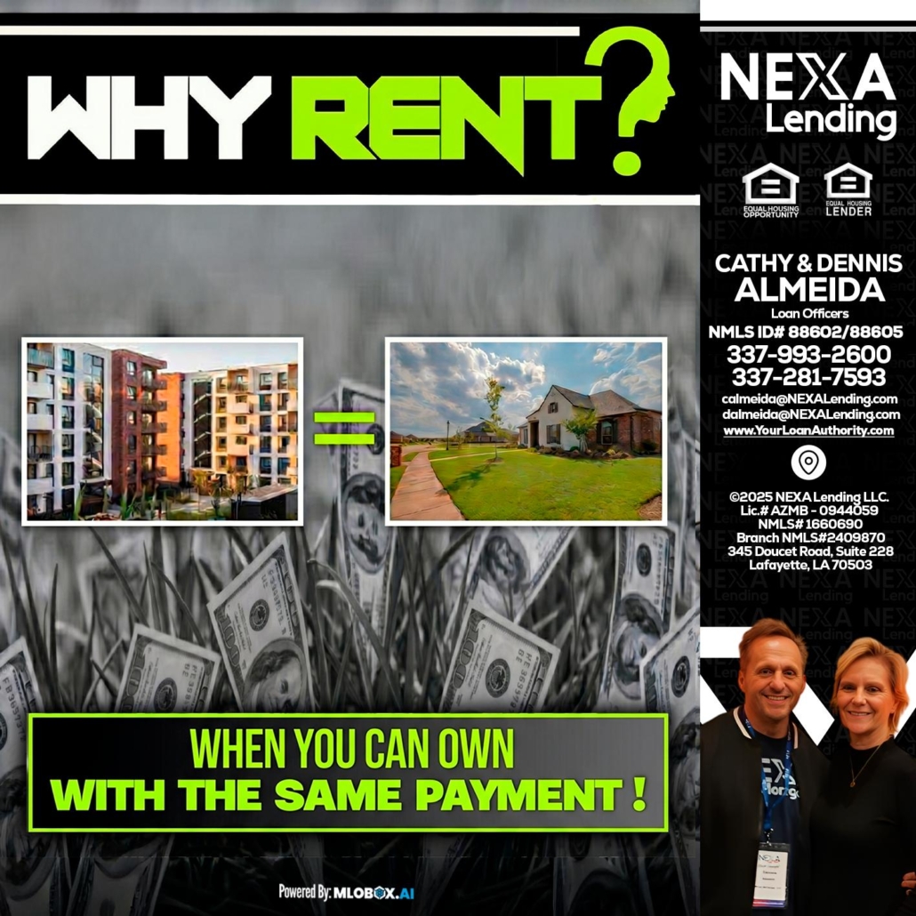 WHY RENT? - Dennis Almeida -Mortgage Loan OfficerAre you tired of renting? Are you tired of paying someone else’s mortgage but not yours? If Yes, then contact me and we can change that, starting today.